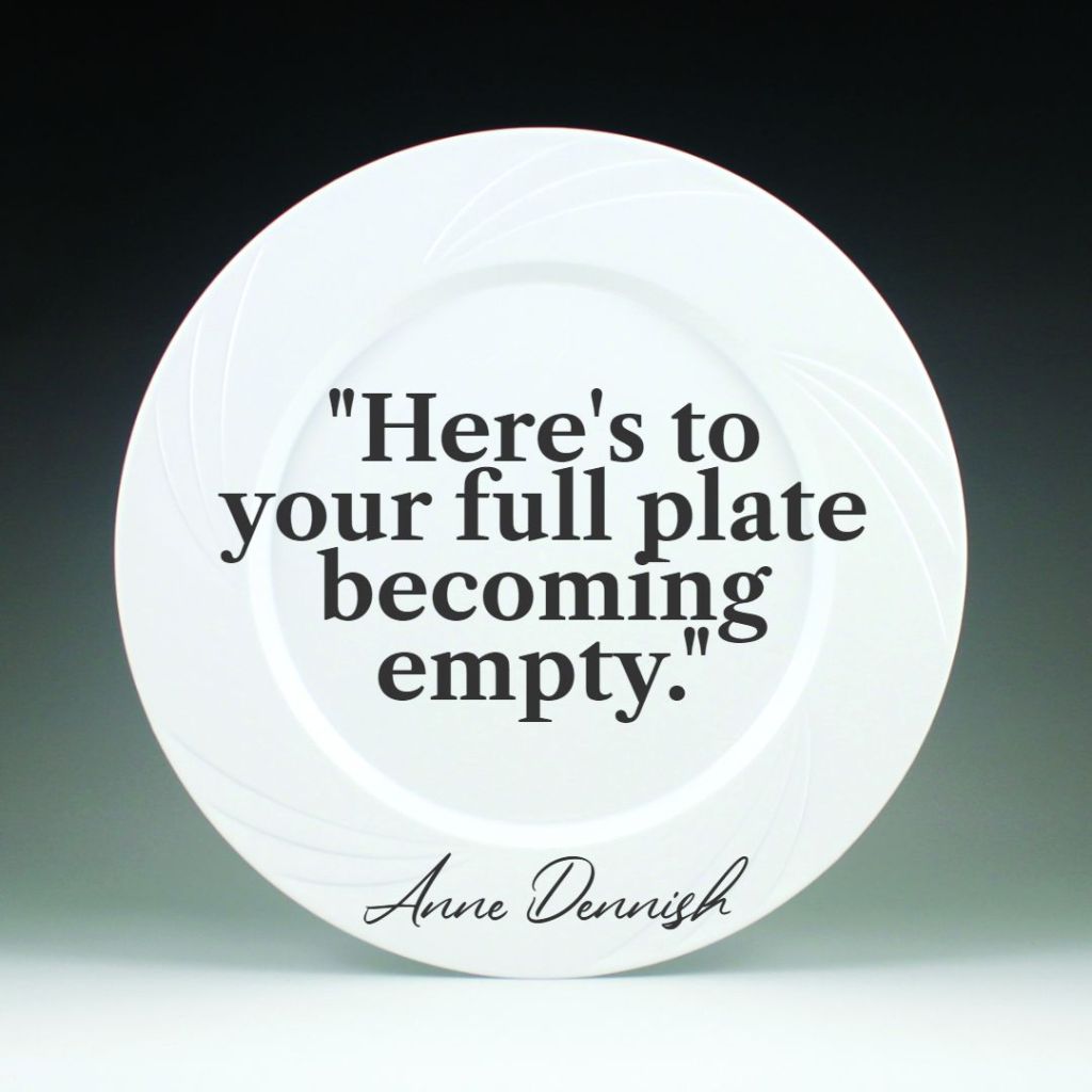 Here’s to “full plates becoming empty.” Here’s to seeing the positive in what seems so negative at this moment.
