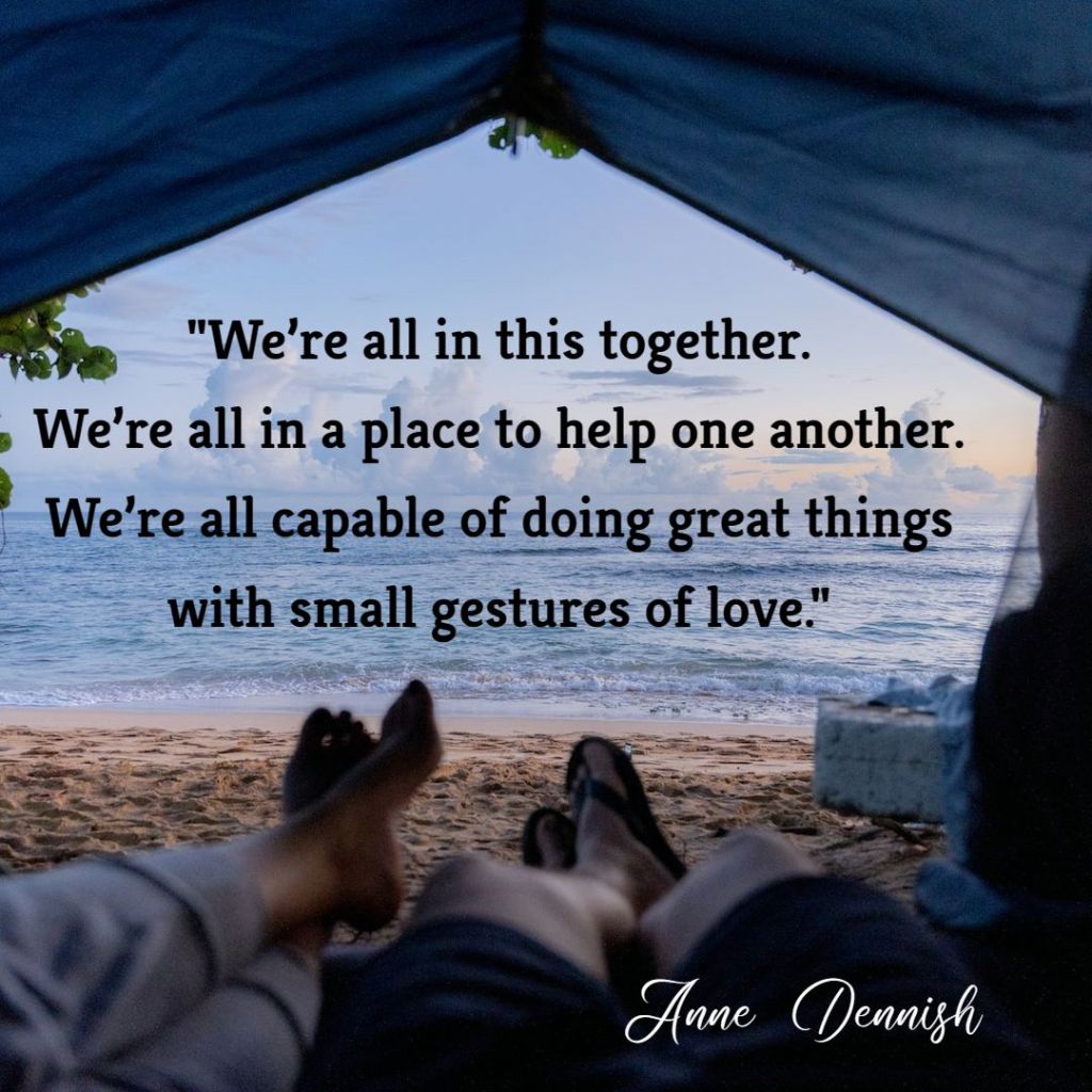 We’re all in this together. We’re all in a place to help one another. We’re all capable of doing great things with small gestures of love.
