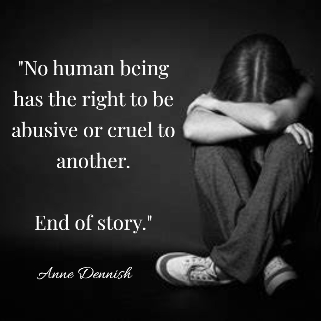 Somewhere along the way, they were taught these behaviors or were allowed to behave that way. Whatever the reason, it doesn’t matter because no one has the right to be abusive or cruel to another, period!