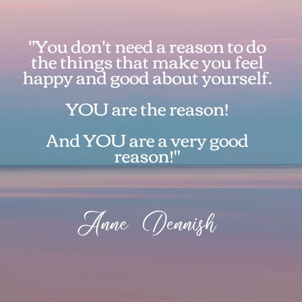 “You don’t need a reason to do the things that make you feel happy and good about yourself. YOU are the reason! And YOU are a very good reason.”